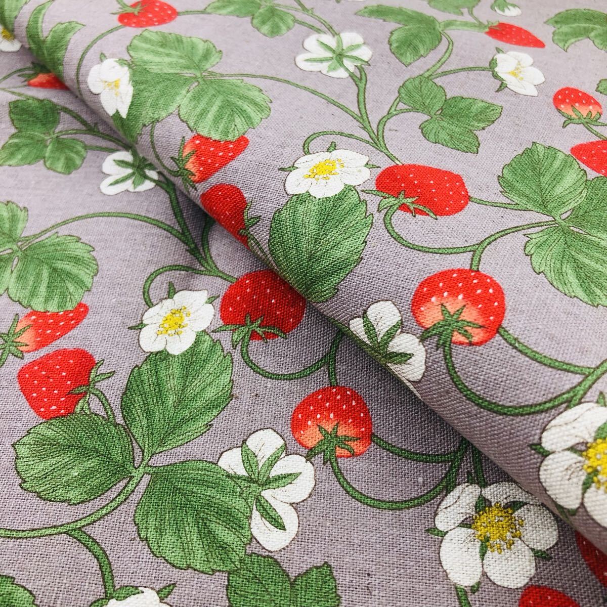 > はぎれ ワイルドストロベリー 110×50 廃盤 綿麻キャンバス いちご柄 コットンリネンキャンバス 生地 いちご