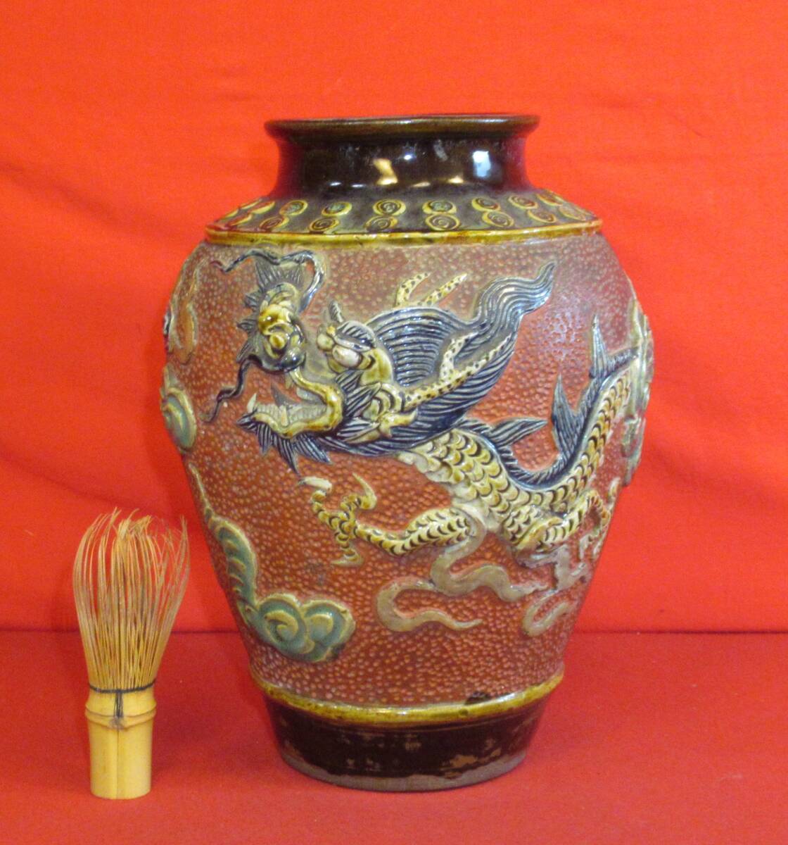 - 民芸復興『古琉球古典焼 雲龍文壺(高さ27,5㎝)花瓶』花器 検:やちむん コレクター放出品 琉球陶器 民藝復興 バーナードリーチ 柳宗悦