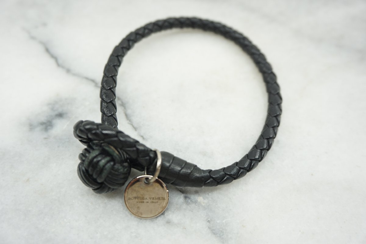 - ★【B送900円】2398 Bottega Veneta ボッテガヴェネタ レザーブレスレット イントレチャート 編み込み シルバー金具×黒