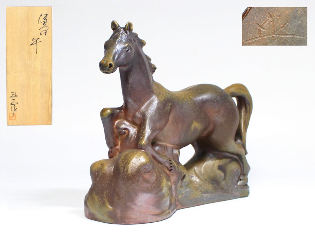 - ◆備前・午・置物・馬・干支・床置・厄除・縁起物・在印・在銘・共箱◆a2373M