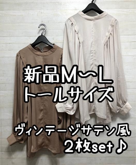 - 新品☆M~Lトールサイズ♪ヴィンテージサテン風おしゃれブラウス2枚Q287