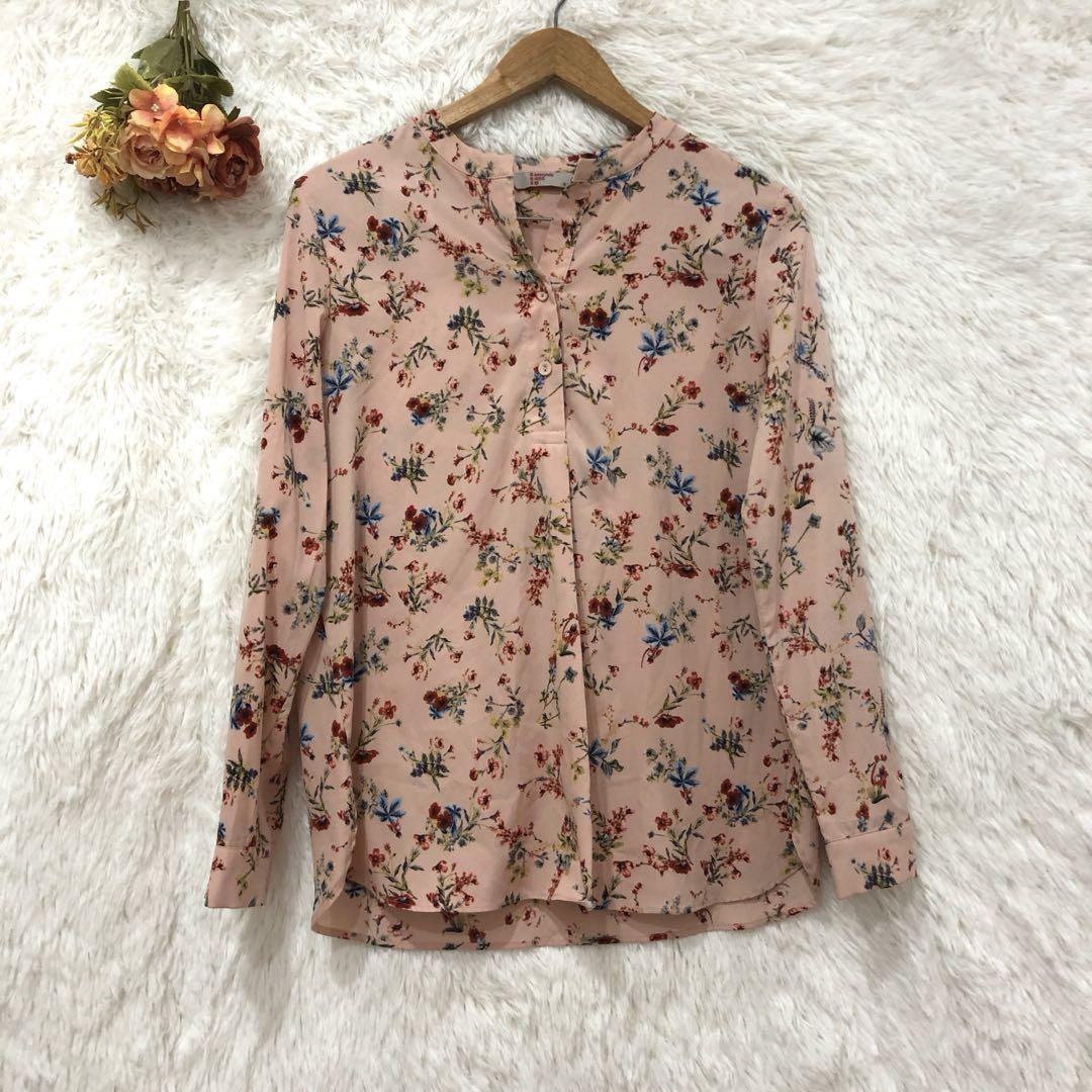 - ★エイトセカンズ★ 花柄 ヘンリーネック ブラウス 【S】 長袖 韓国 ピンク