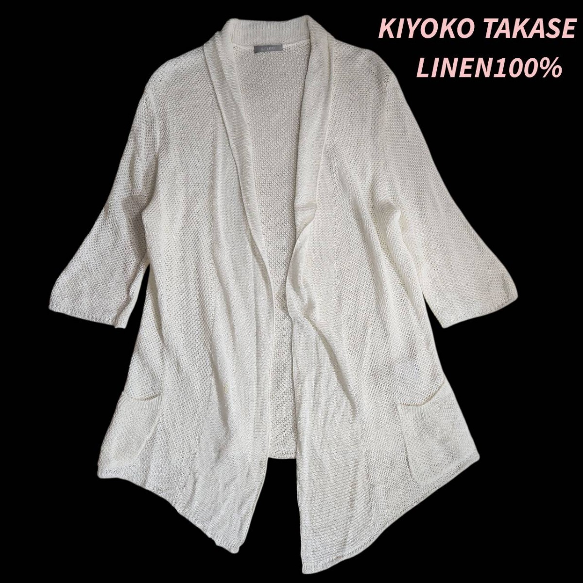 > K.T LINO 麻リネン100% ややロング丈 カーディガン 表記サイズ11号 L オフホワイト オープンフロント KIYOKO TAKASE 84847