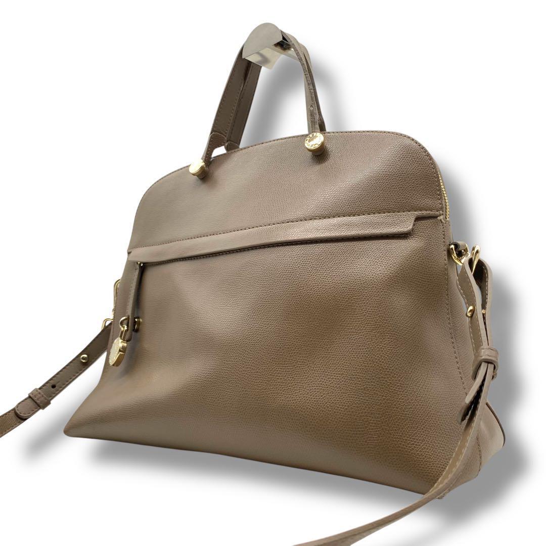 > フルラ パイパー 2way ハンドバッグ ショルダー レザー グレージュ