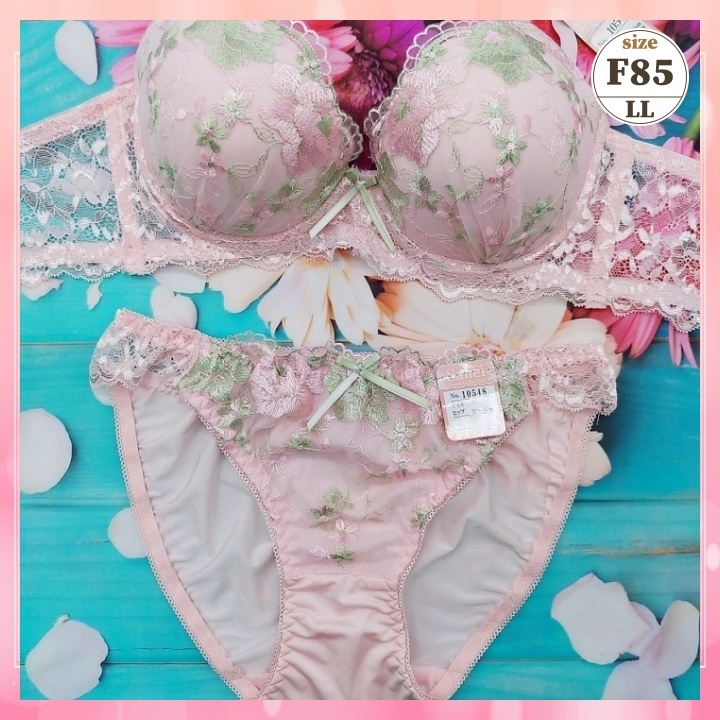 > Zf8507◎美胸ブラショーツセット【F85/LL】下着 ランジェリー 脇高 美谷間 フラワー刺繍 ピンク 新品未使用