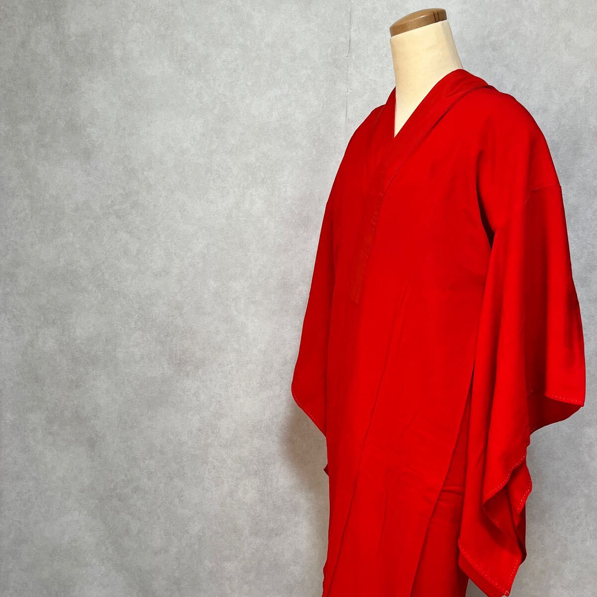 - 長襦袢 アンティーク 縮緬 赤色 着物 昭和レトロ 大正ロマン モダン リメイク 絹 正絹100% け12-11y