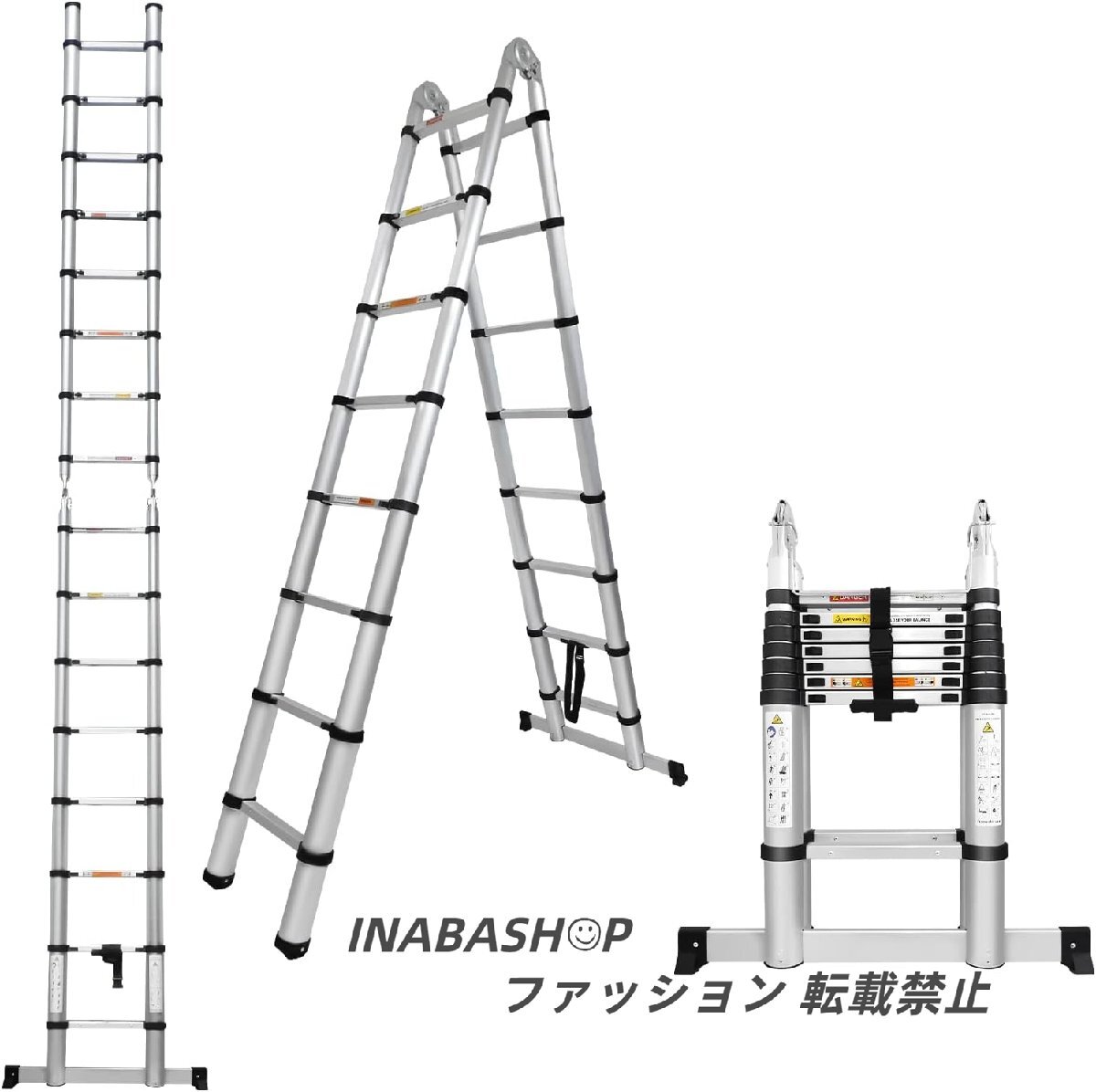 - 伸縮はしご両用梯兼用脚立スーパーラダー 折り畳み多機能アルミはしご 持ち運びに便利室内室外両用 自動ロック スライド式 アルミ梯子