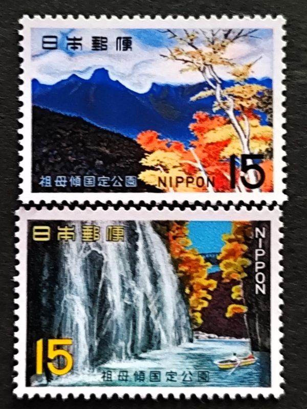 > [25091105]【国定公園 祖母傾】単片2種「祖母山の遠景・高千穂峡」15円×2 1967年発行 美品