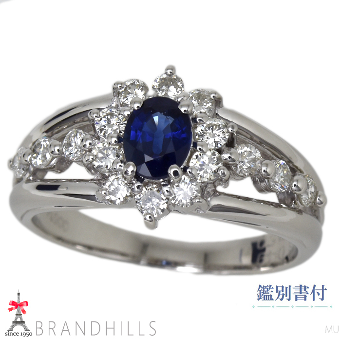 > サファイア 0.49ct ダイヤモンド 0.50ct リング 鑑別書付 PT900 プラチナ 指輪 #12 6.3g 美品