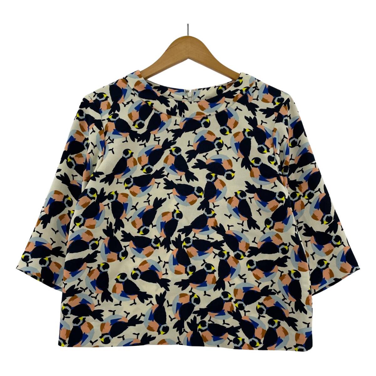 - Paul & Joe Sister ポールアンドジョーシスター 総柄 7分袖 ブラウス size1/オフホワイト×ネイビー ゆうパケットOK