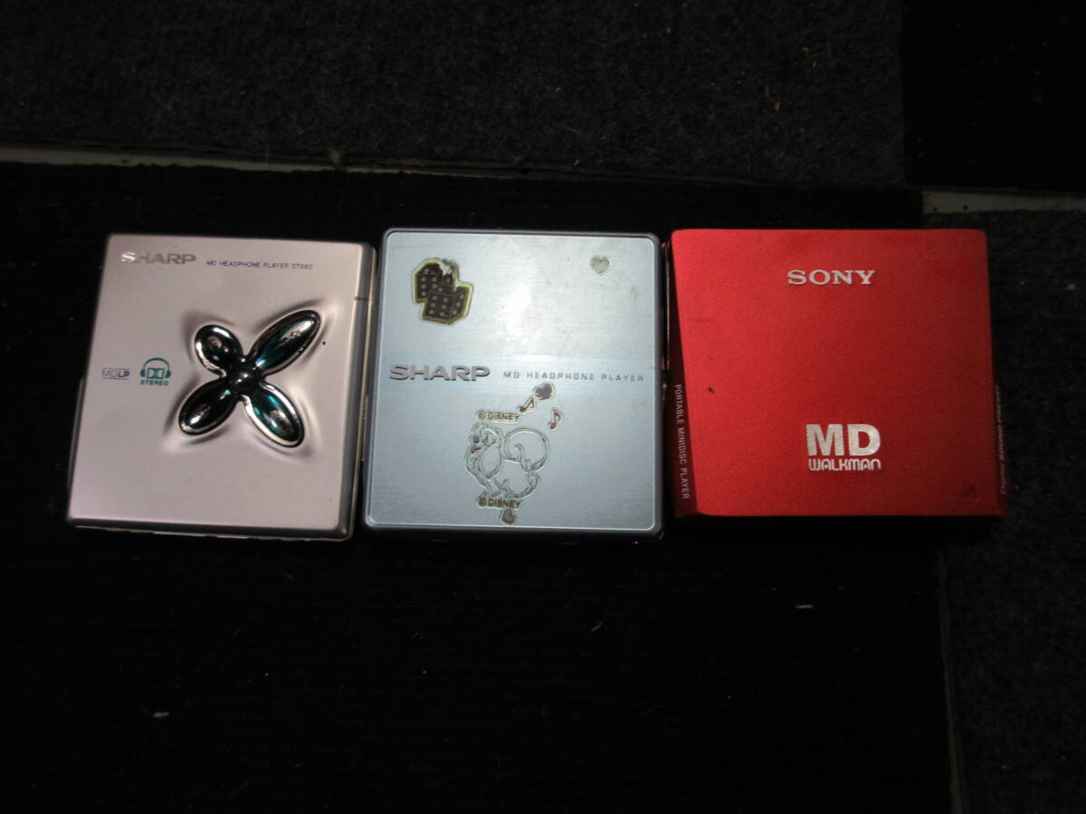 - 棚12・A869 SONY MZ-E75/SHARP MD-AE600-A・ST880 ポータブルMDプレーヤー 3台まとめ