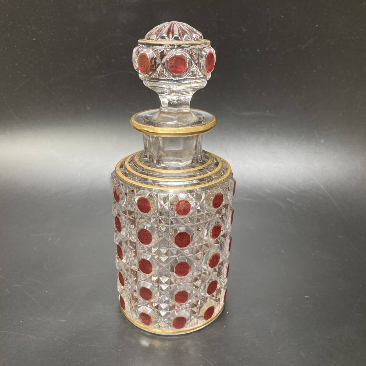 - 【名品】オールド バカラ ディアマン ピエーリー 香水瓶 14.5cm ルビー レッド 赤硝子 ダイヤモンド ギヤマン 切子 アンティーク