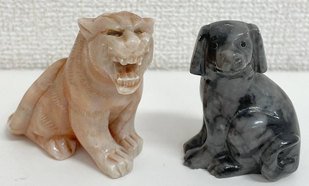 - 【置物 トラ・犬 2点セット】虎 寅 干支 縁起物 天然石 彫刻 インテリア オブジェ 飾/A78-397