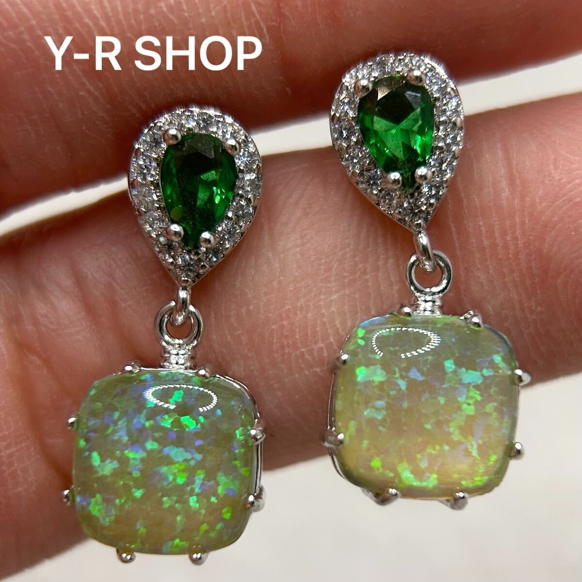 > エメラルドとグリーンファイヤーオパールのゆらゆらピアス★レディースシルバー 925刻印カラーストーンアクセサリー新品宝石Y-Rハワイアン