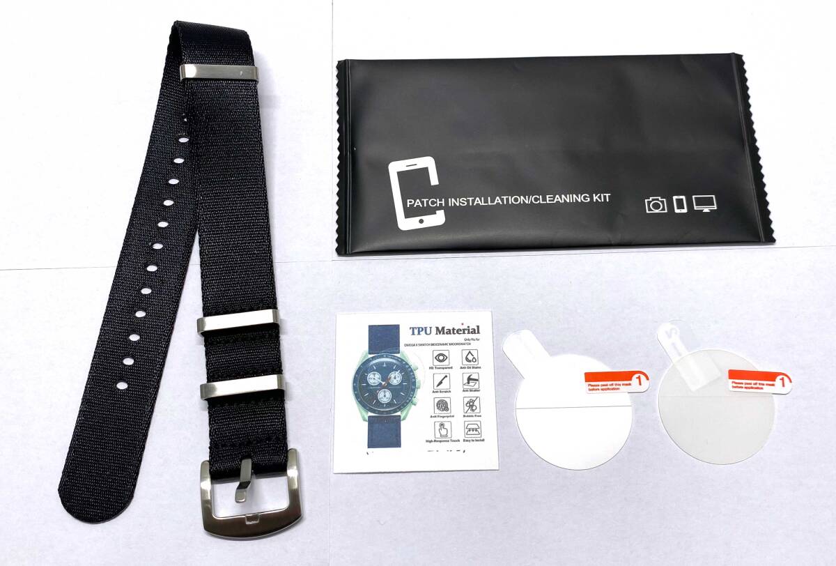 - 【未使用・修理部品】OMEGA X Swatch オメガ スウォッチ 対応 保護フィルム ナトーベルト セット おまけ-フィルム+1枚/バネ棒2本 / BY-1123