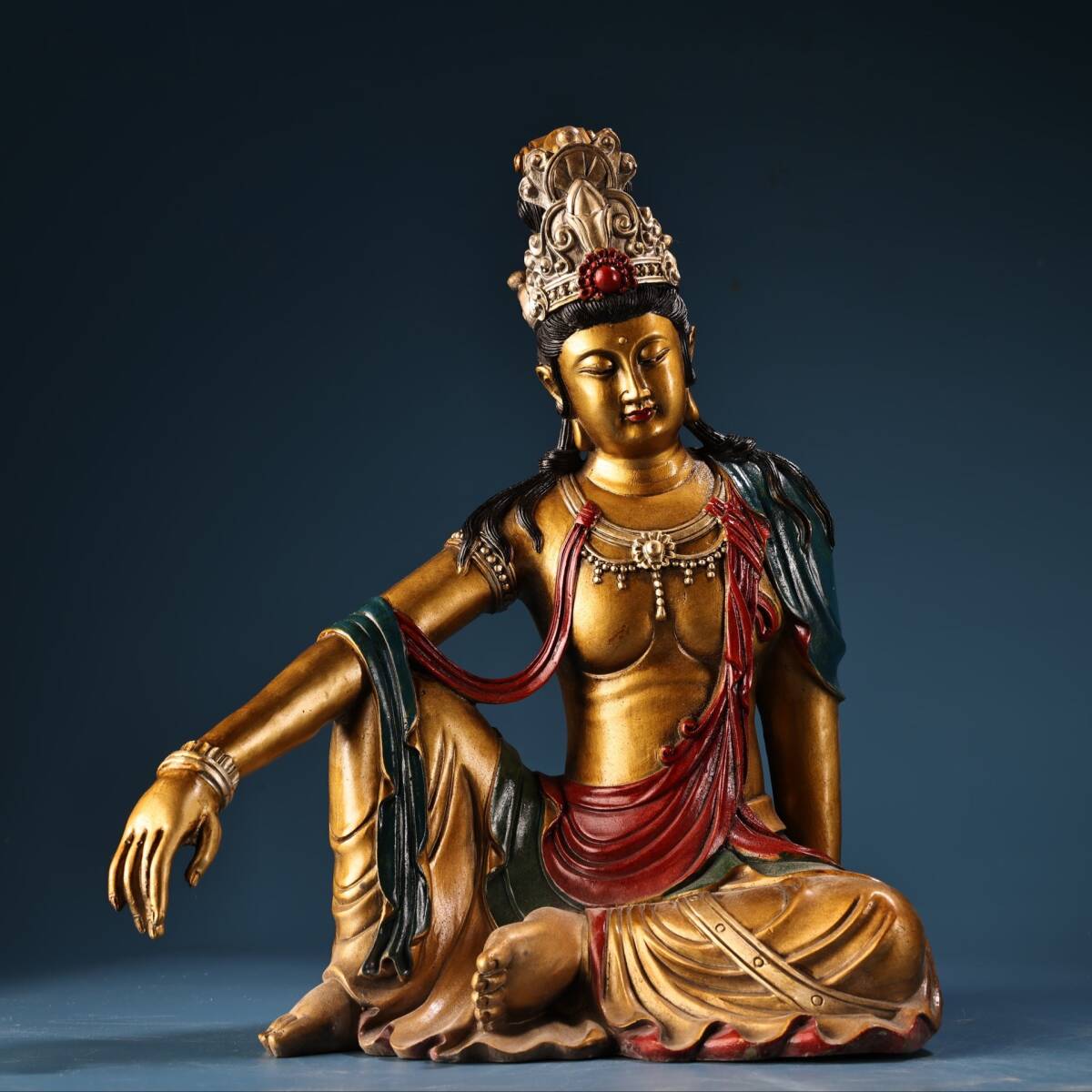 - 【超珍館蔵】銅製 描金 彩繪 自在觀音像 仏像 宗教 仏教古美術 供養品 古賞物 古董品 古美術品 時代物 旧家蔵出 稀少珍蔵品