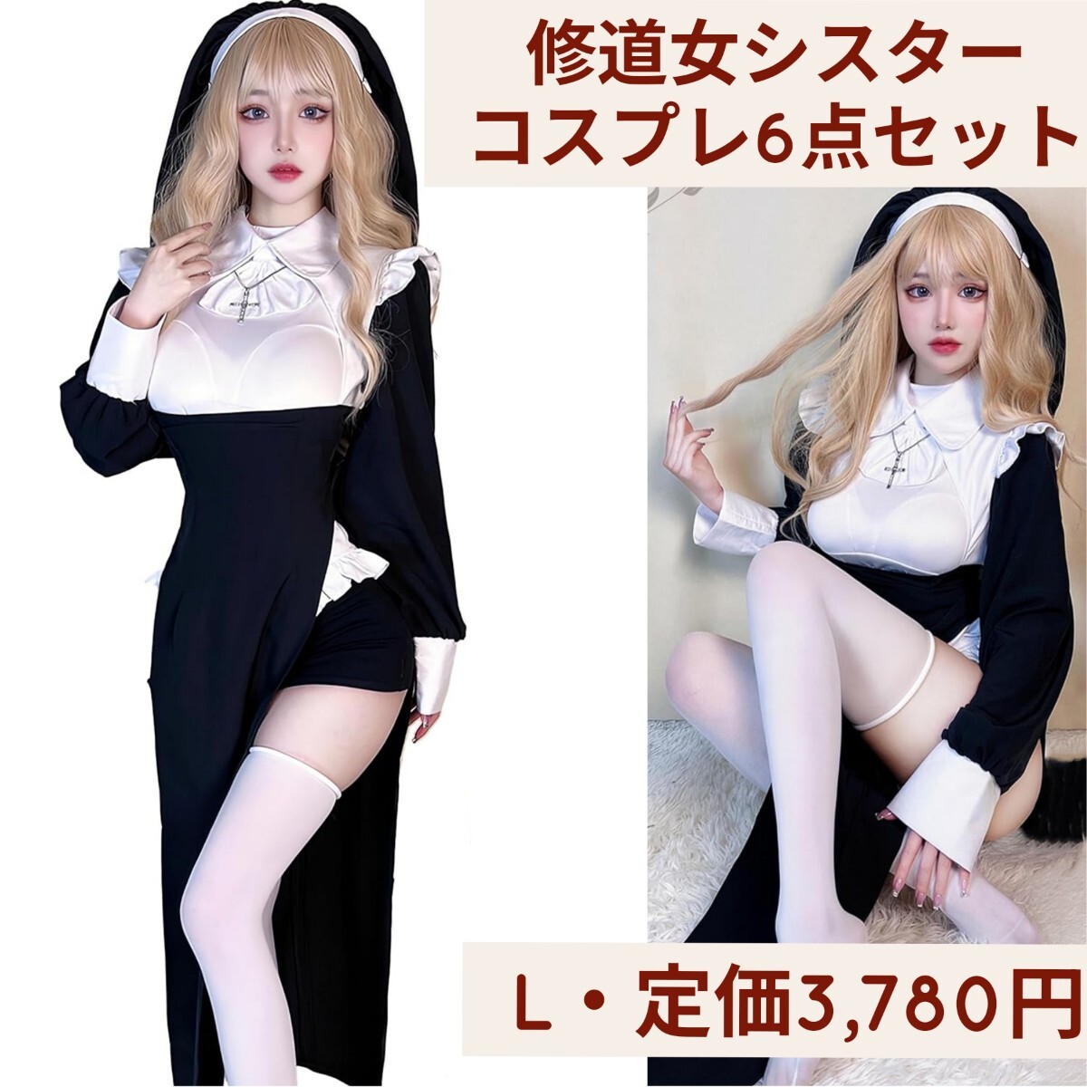 - 新品☆定価3,780円 Lサイズ 修道女 シスター コスプレ衣装 6点セット シスター服 ハロウィン 仮装 セクシー レディース 修道院 コスプレ服