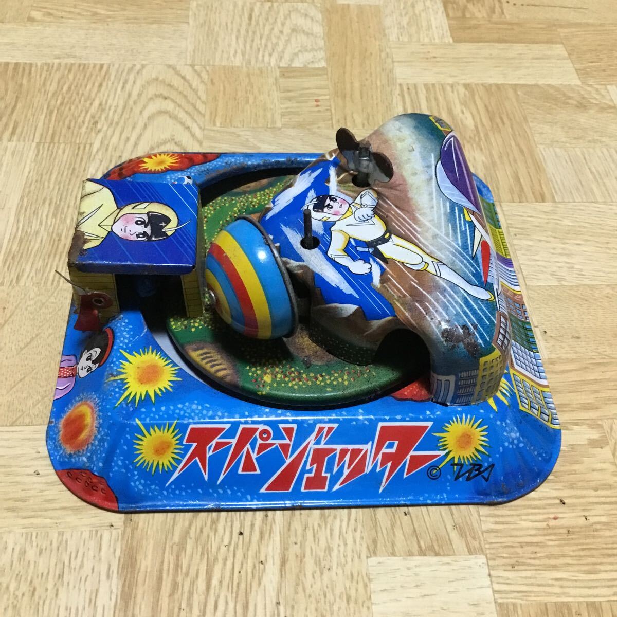 - ブリキ 当時物 おもちゃ ヨネザワ 電車廻り ジャンク品 スーパージェッター 台14×14cm