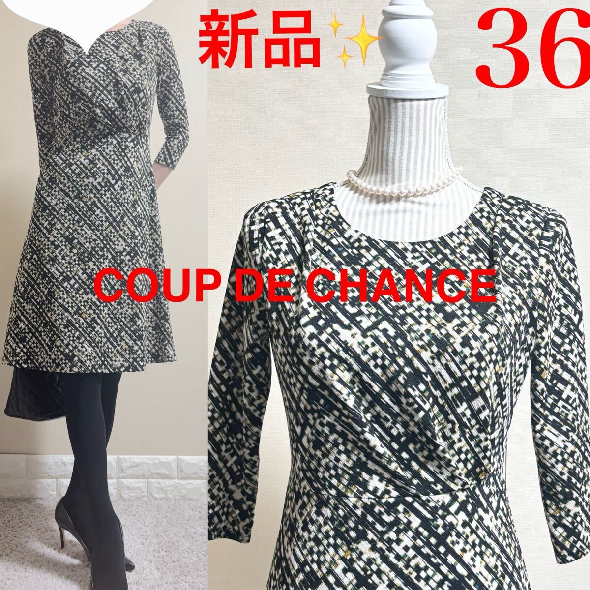 - 新品!COUP DE CHANCE クードシャンス 定価2.5万 洗える 七分袖 ワンピース 36 S 通年 モザイク チェック グリーン ストレッチ