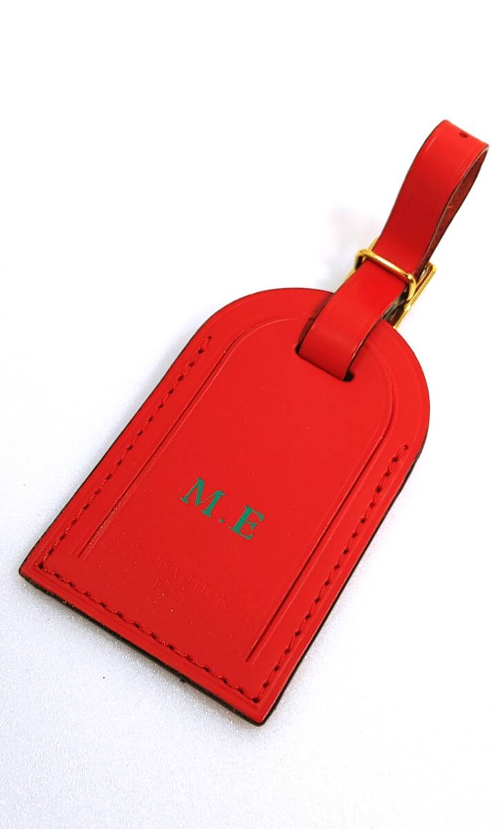 - 美品ルイヴィトンLOUIS VUITTONレッドレザーネームタグ「M・E」イニシャル入り