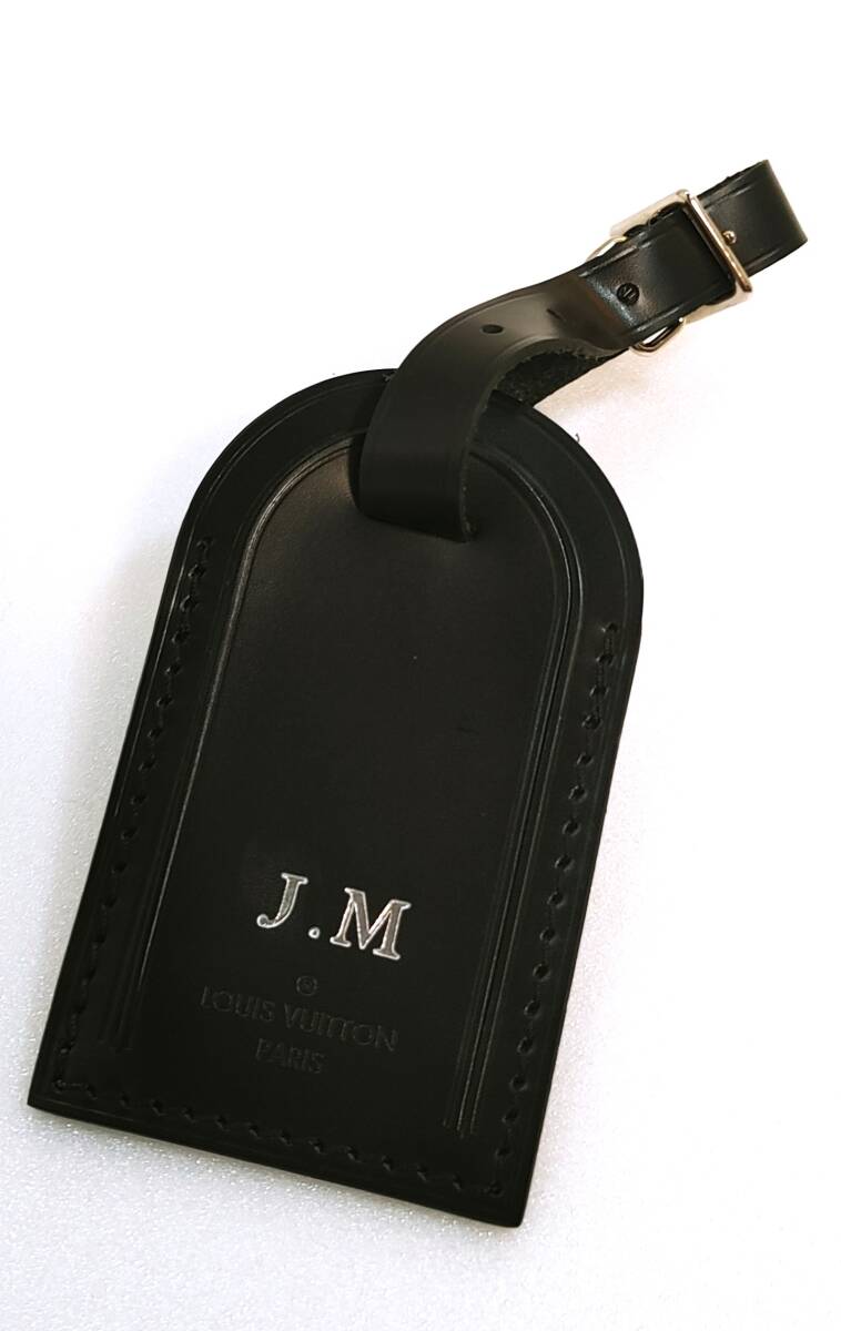 > 美品ルイヴィトンLOUIS VUITTONブラックレザーネームタグ「J・M」イニシャル入り