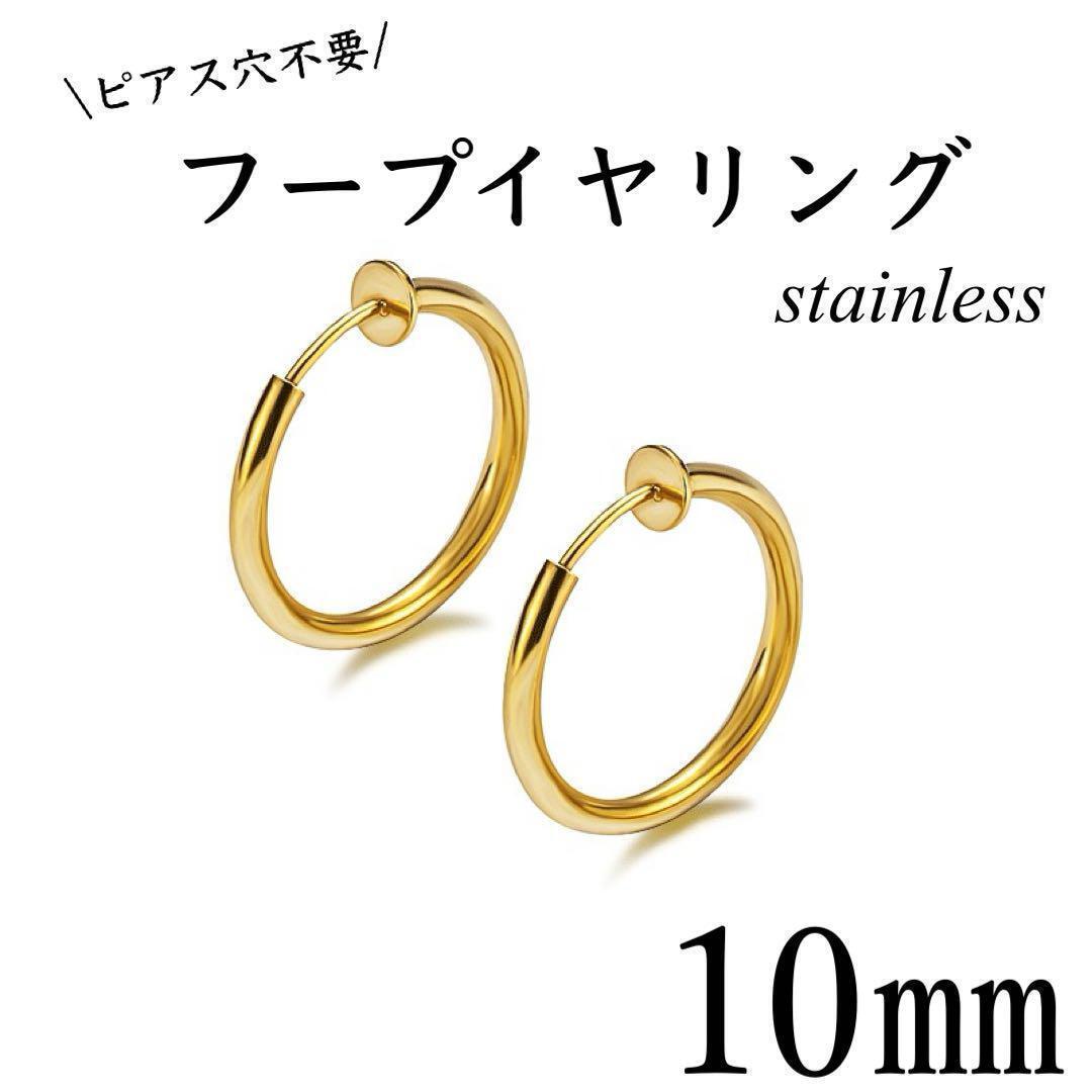 - フェイクピアス フープイヤリング ゴールド ステンレス 10㎜ 2個セット