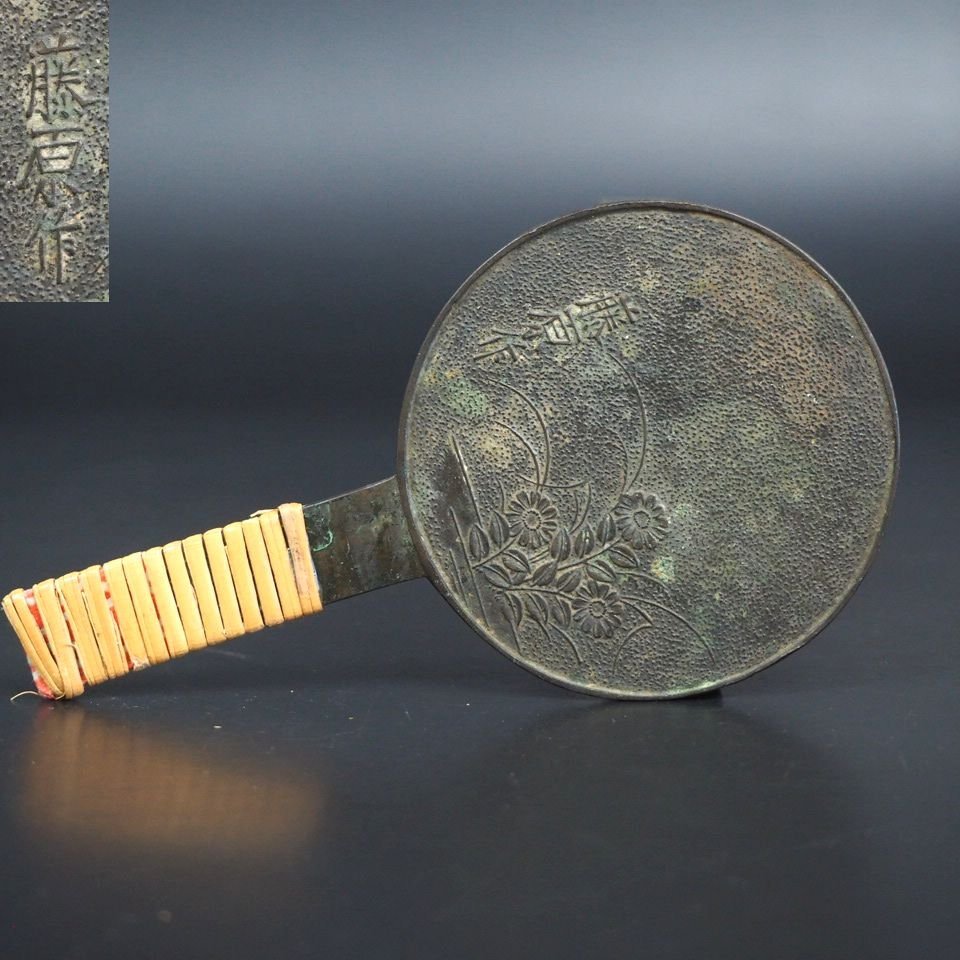 - 【金富士】値下げ中 江戸期 藤原作 希少小振り 古鏡/銅鏡/和鏡 径6.9cm 検/茶托茶壺古錫玉川堂高岡佐渡銅器龍文堂亀文堂江戸