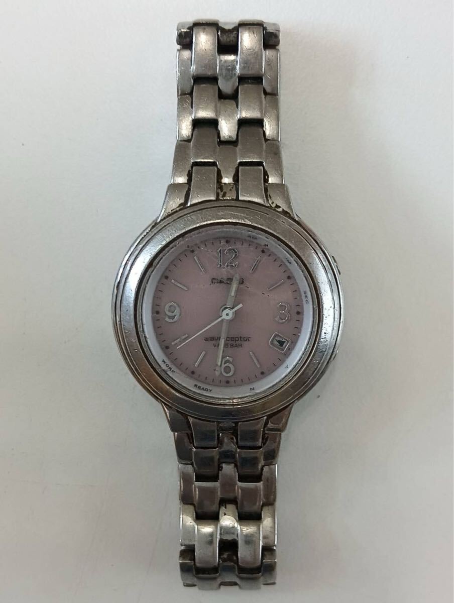 - 【中古品】CASIOカシオ Wave Ceptorウェーブセプター 腕時計 ソーラー LWQ-120 シルバー ステンレス ピンク文字盤 時計 現状品