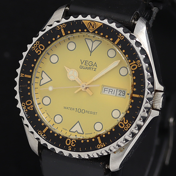 - シチズン ベガ 1408-398148 QZ 黄色系文字盤 デイデイト メンズ腕時計 KTR 2000000 NSK