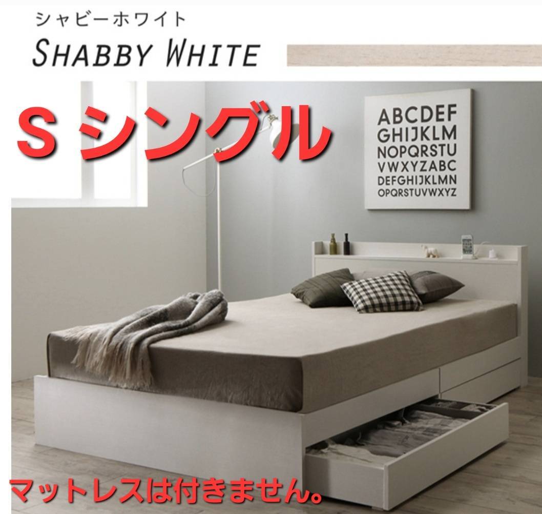 > ①フレームのみ【アウトレット品】シングルベッド・2杯収納コンセント付・シャビーホワイト