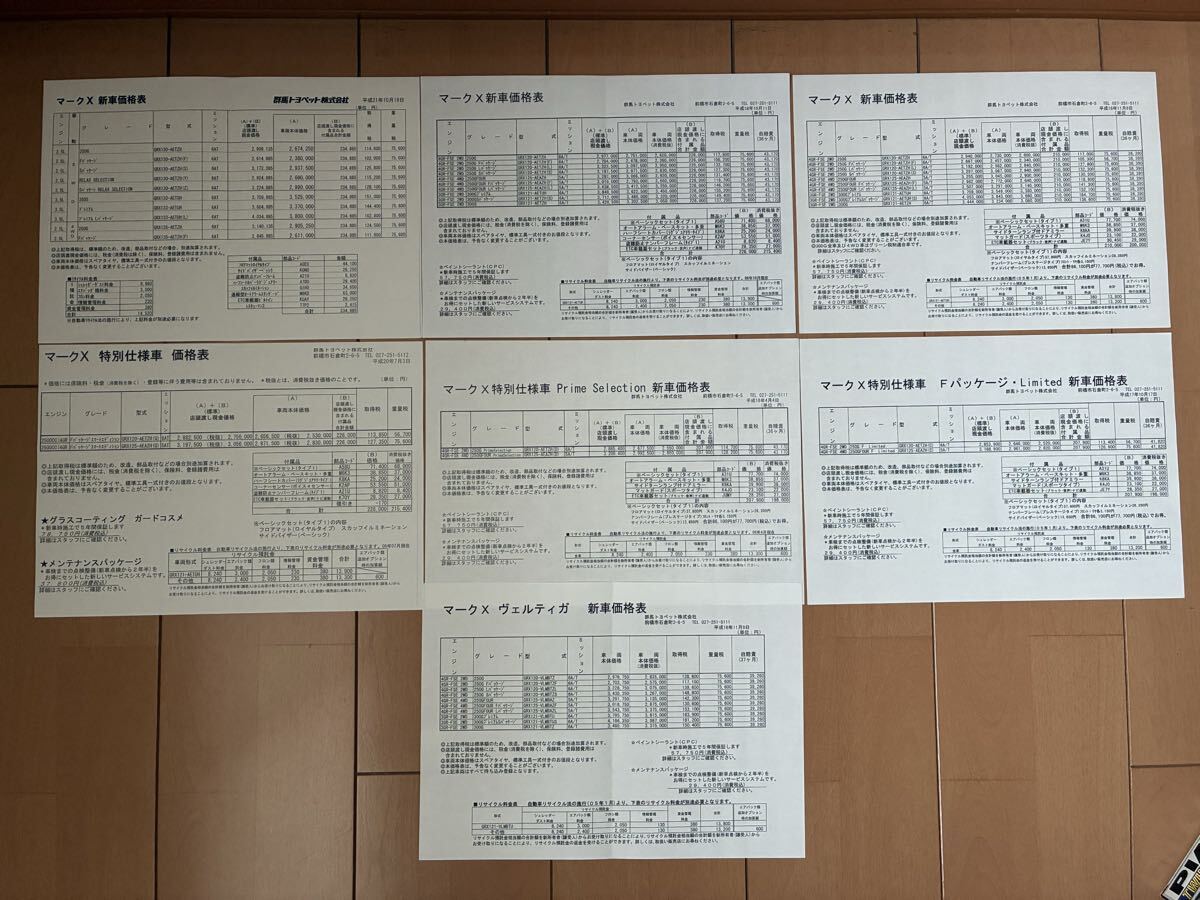 - トヨタマークX 価格表7枚(平成16年〜平成21年)