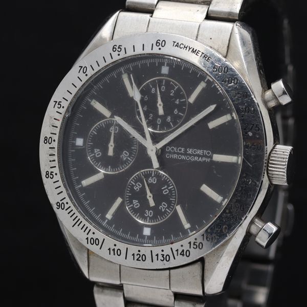 > 稼働 ドルチェセグレート SM101 クロノグラフ ラウンド QZ ブラック文字盤 メンズ腕時計 TKD 2000000 NSK