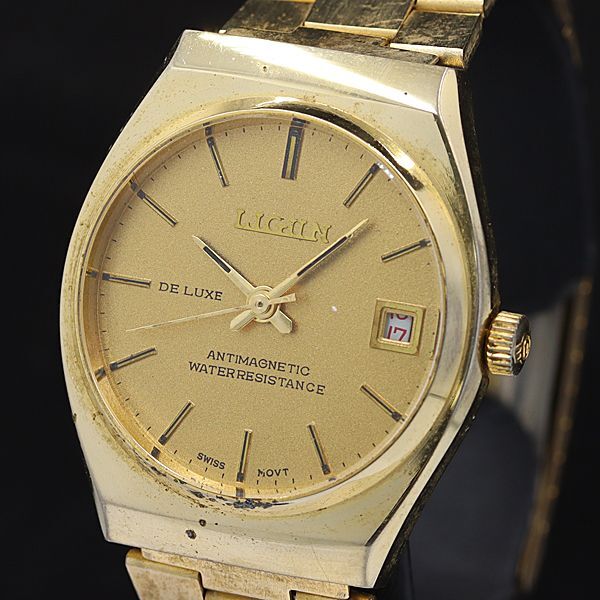 - 稼働 リジン 手巻き デラックス ゴールド文字盤 デイト ヴィンテージ メンズ腕時計 KMR 2000000 NSK