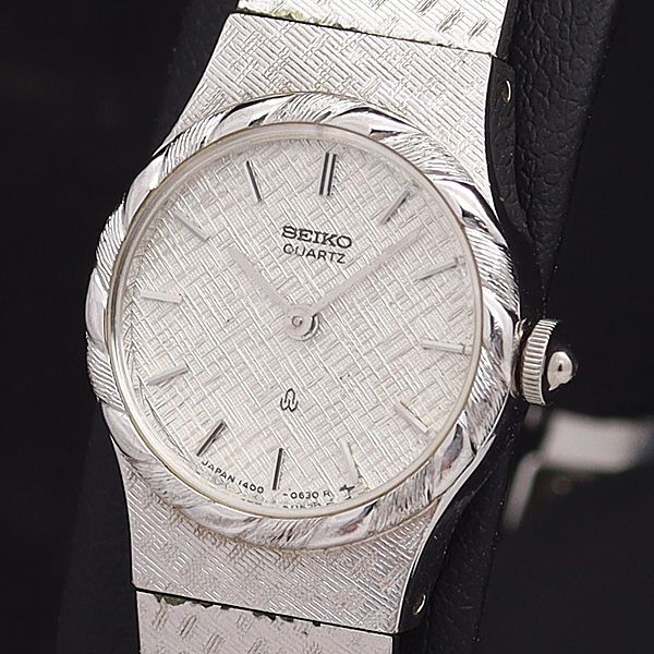 - 稼働 良品 セイコー QZ 1400-0110 シルバー文字盤 ラウンド レディース腕時計 NKG