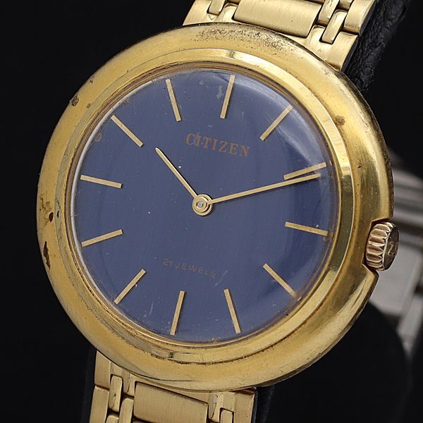 - シチズン 手巻き 4-012526-K 青文字盤 21石 ラウンド メンズ腕時計 IKE