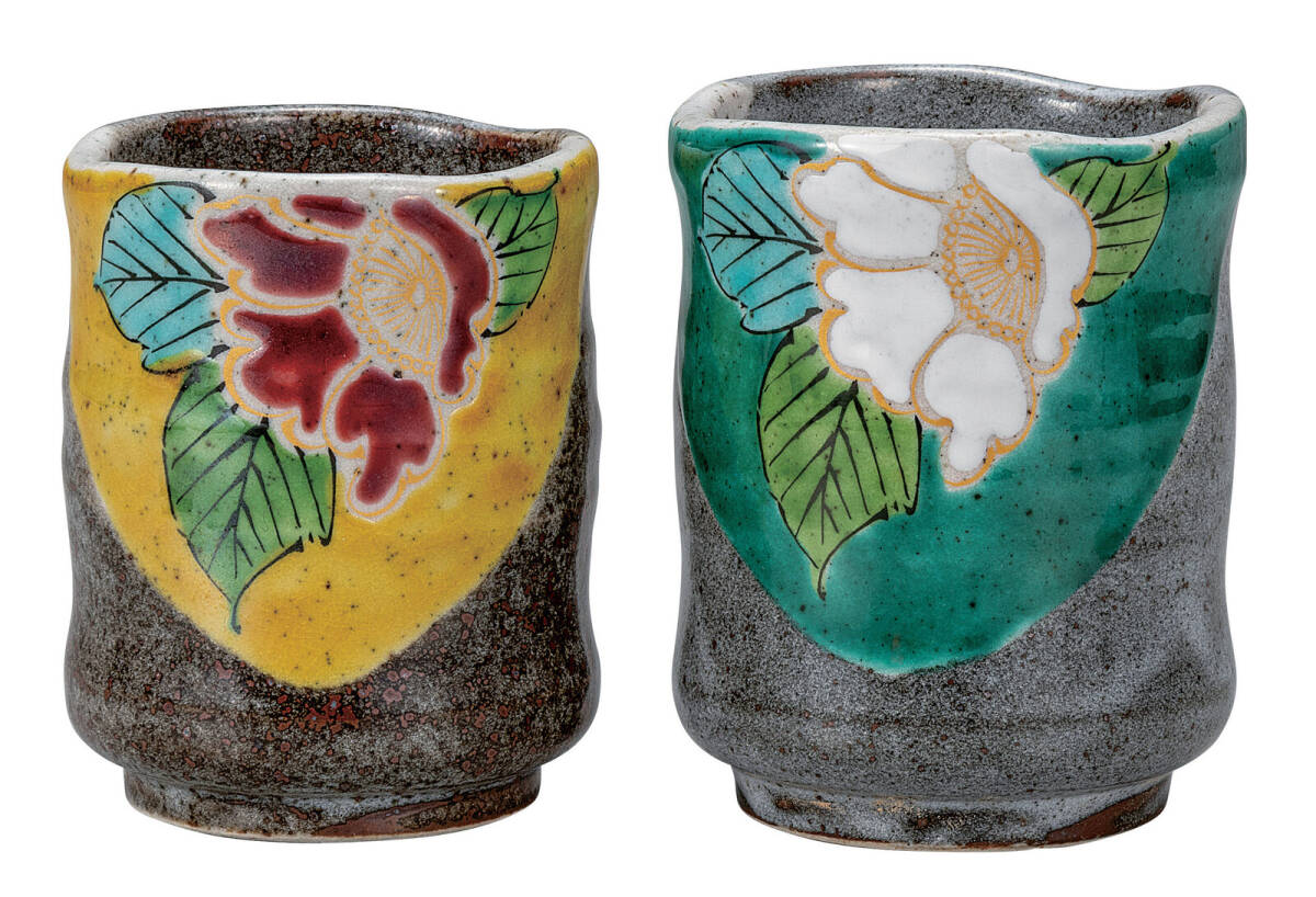 - 九谷焼! ☆色絵山茶花・組湯呑☆ K9-765 新品 汲出 煎茶 ほうじ茶 茶器 ギフト