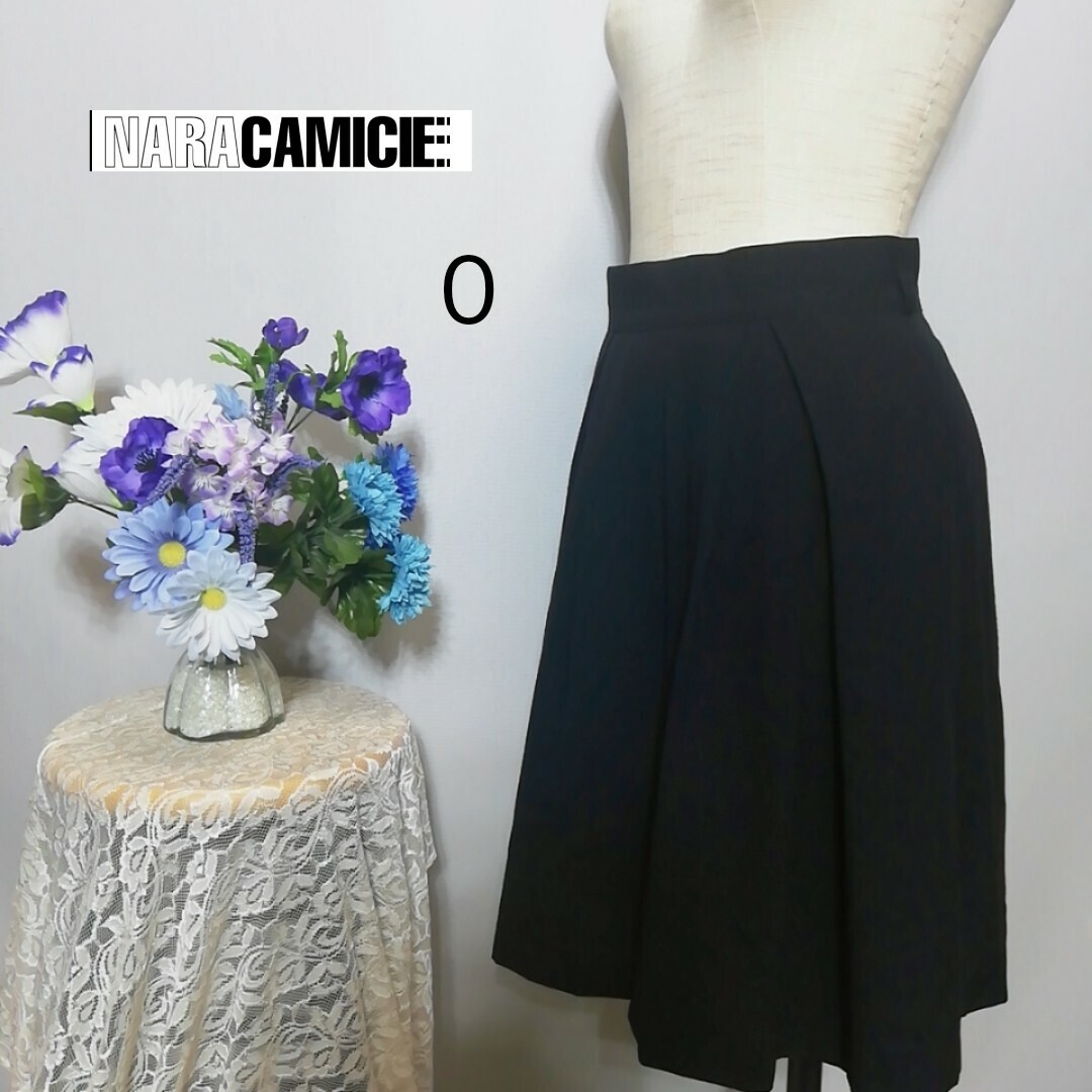- 極上美品 ナラカミーチェ ひざ丈フレアスカート 黒色系 Sサイズ