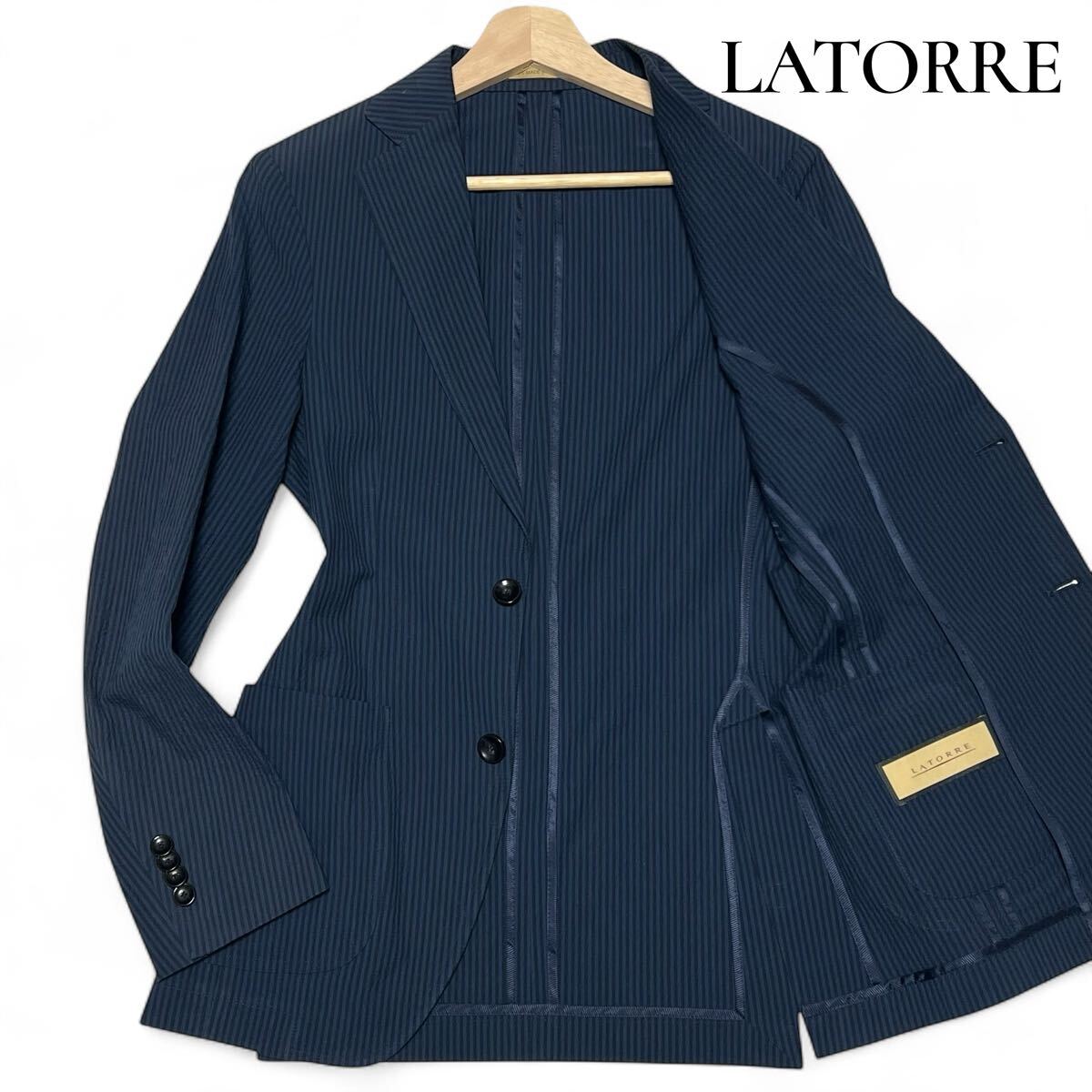 - 最高級◎Mサイズ位 ラトーレ【イタリア最高級品質】LATORRE ストライプ アンコン ジャケット ネイビー コットン イタリア製◎メンズ