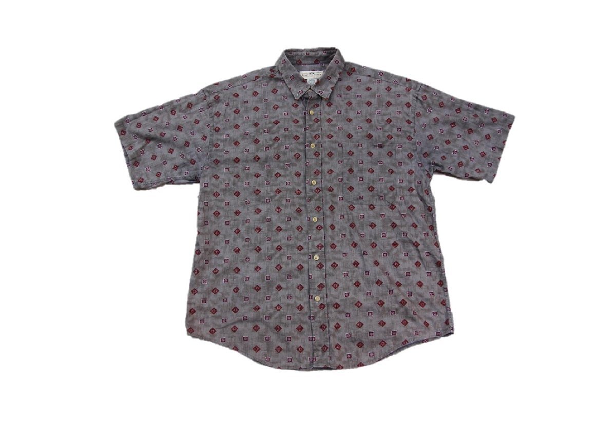 > 80s 90s VINTAGE ヴィンテージ USED 古着 Natural Issue S/S Cotton Shirts 半袖総柄シャツ Grey L Big ビッグシルエット グレー