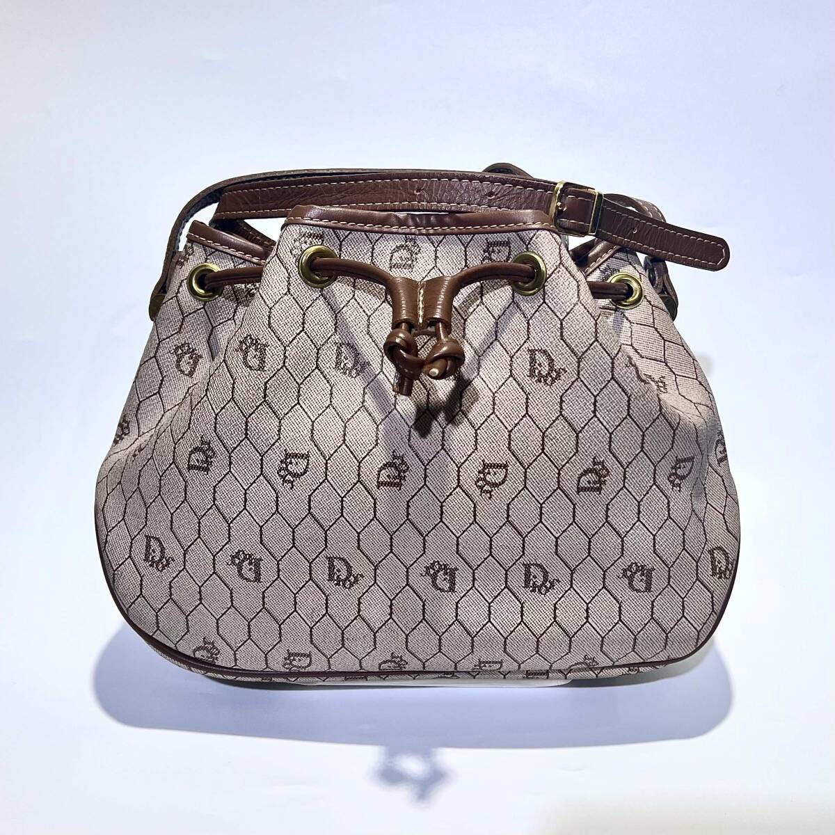 - Christian Dior クリスチャン ディオール ハニカム 巾着 ショルダーバッグ ベージュ レザー PVC ヴィンテージ レディース 斜め掛けバッグ