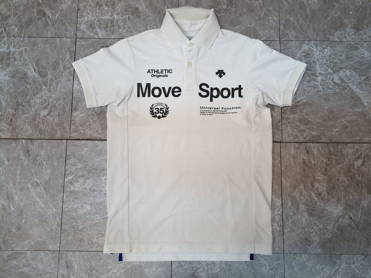 - 6.デサント ムーブスポーツ デカロゴ プリント 速乾 伸縮性あり 半袖 ポロシャツ MOVESPORT メンズM 白黒x805