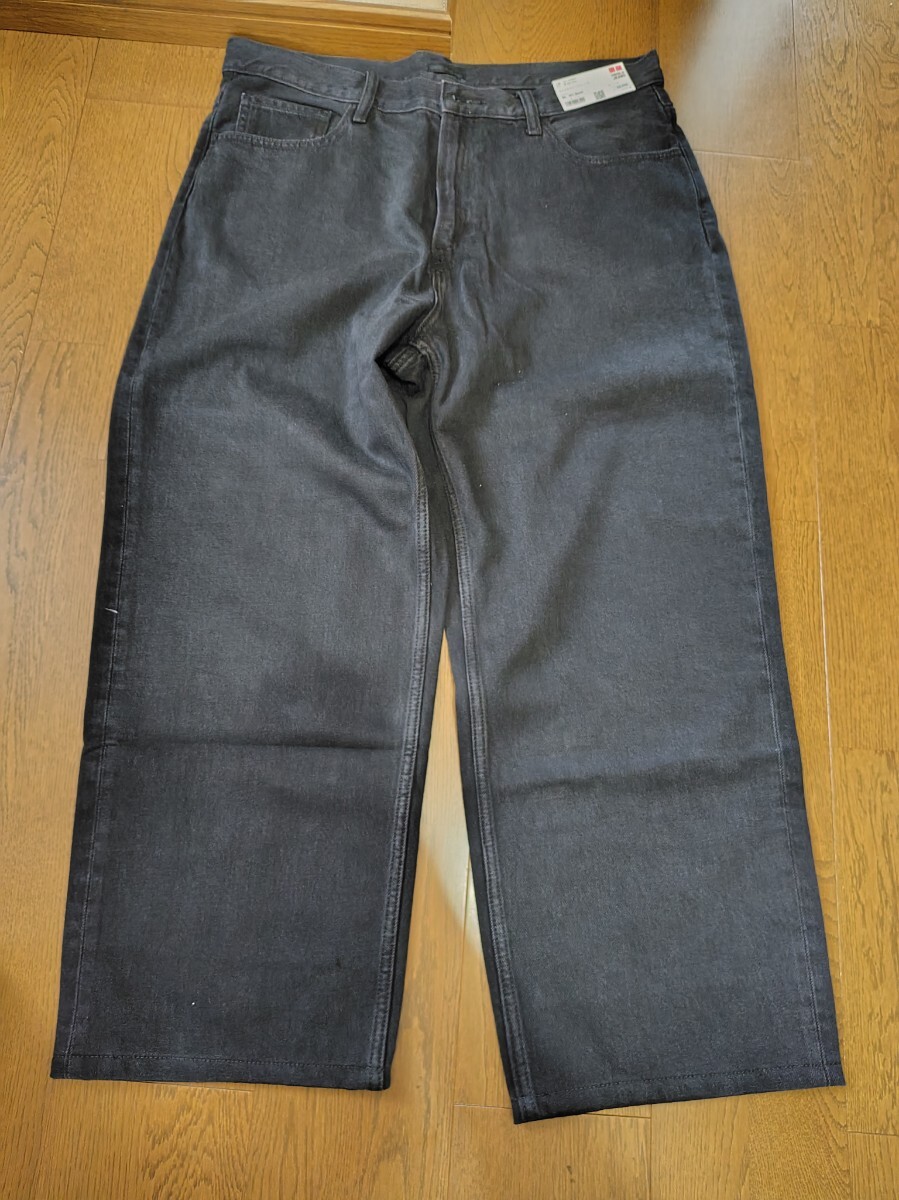 - 新品未使用タグ付き ユニクロ ワイドストレートジーンズ ダークグレー ウエスト 36 (91.5cm)