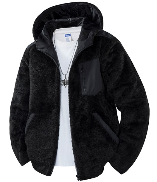 - 新作 メンズ フリースジャケット 厚手 紳士 ブルゾン ファーコート カジュアル パーカ 黒/M