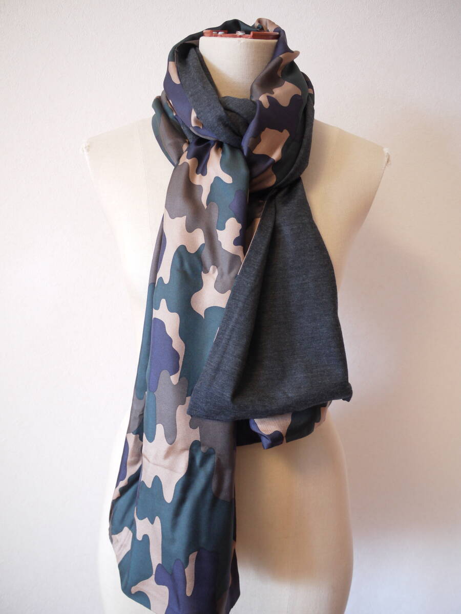 - otto design シルク/ウール 迷彩ストール グリーン×ネイビー×ブラウン×ベージュ 美品