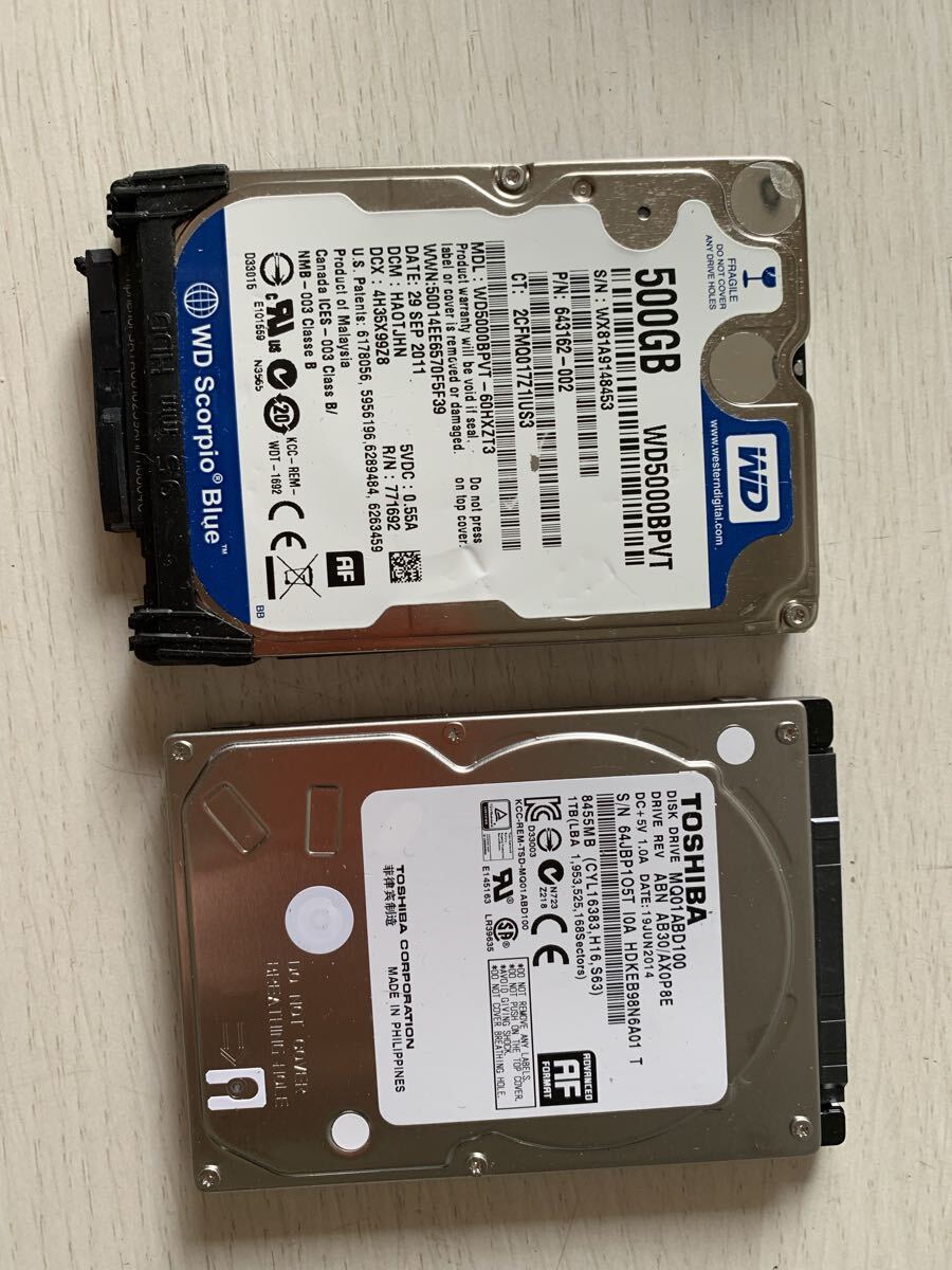 - 2個セット WD Scorpio Blue 500GB TOSHIBA 1TB HDD