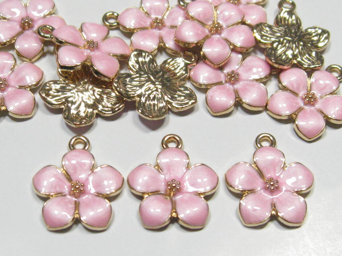 - 五弁花 フラワー 花 ピンク チャーム パーツ 20個!