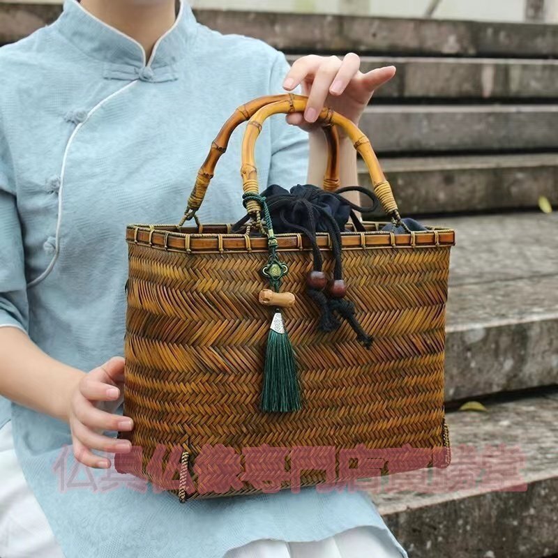 - 【寶勝堂】バスケット 収納かご おしゃれ竹籠 編み 取っ手 持ち手 手作りトートバスケット 持ち手 自然の良品