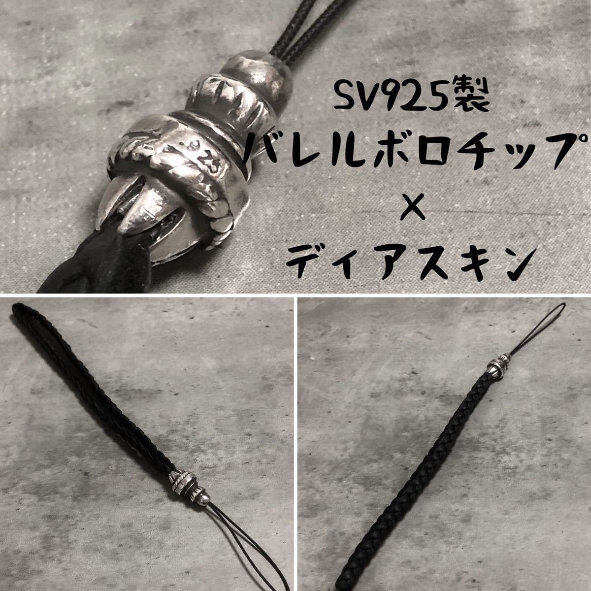 - シルバー925 バレル ボロチップ レザーブレード レザーブレイド ディアスキン 鹿紐 携帯 ストラップ キーホルダー Sterling silver 925