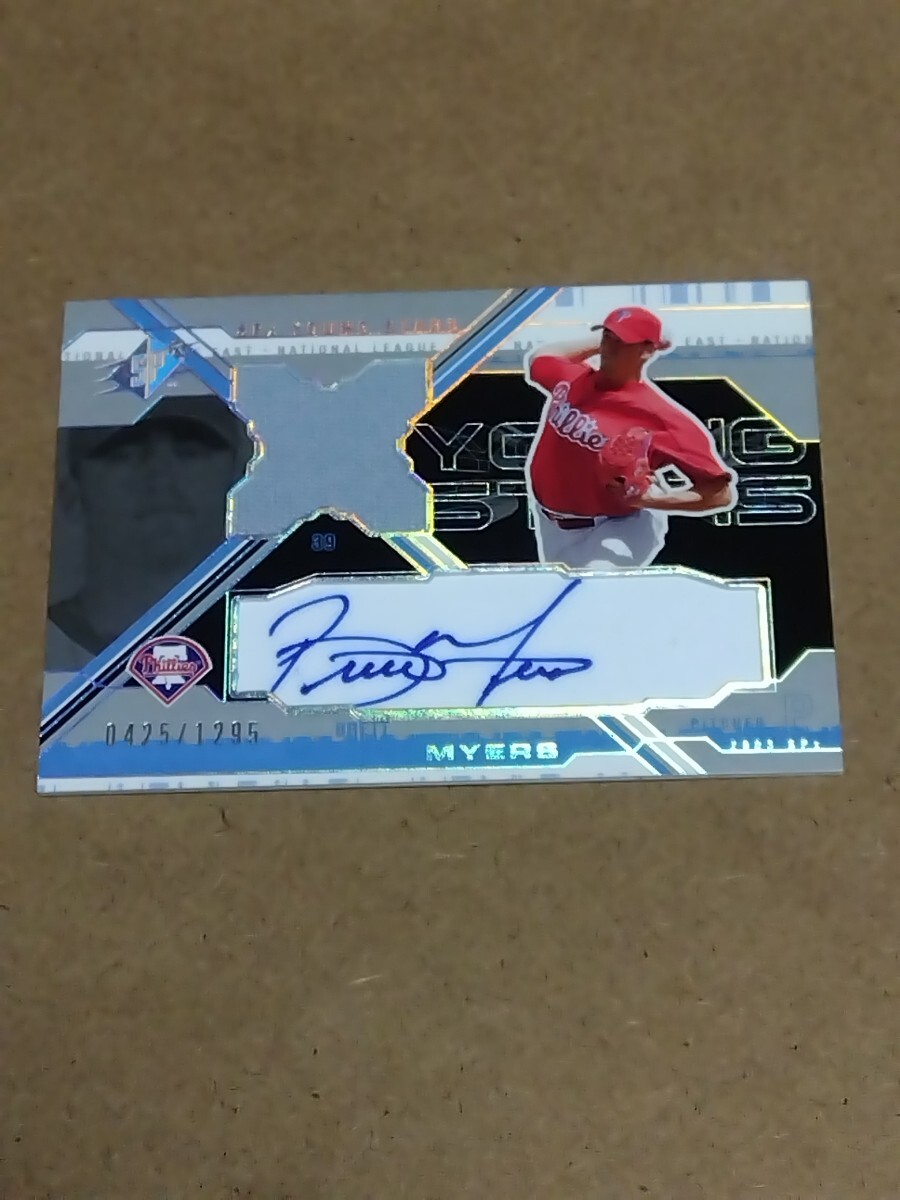 > 通算97勝96敗40セーブ 4年連続を含む6回の2桁勝利 295枚限定 99年ドラフト1位 ブレット マイヤーズ 直筆サインカード Brett Myers auto