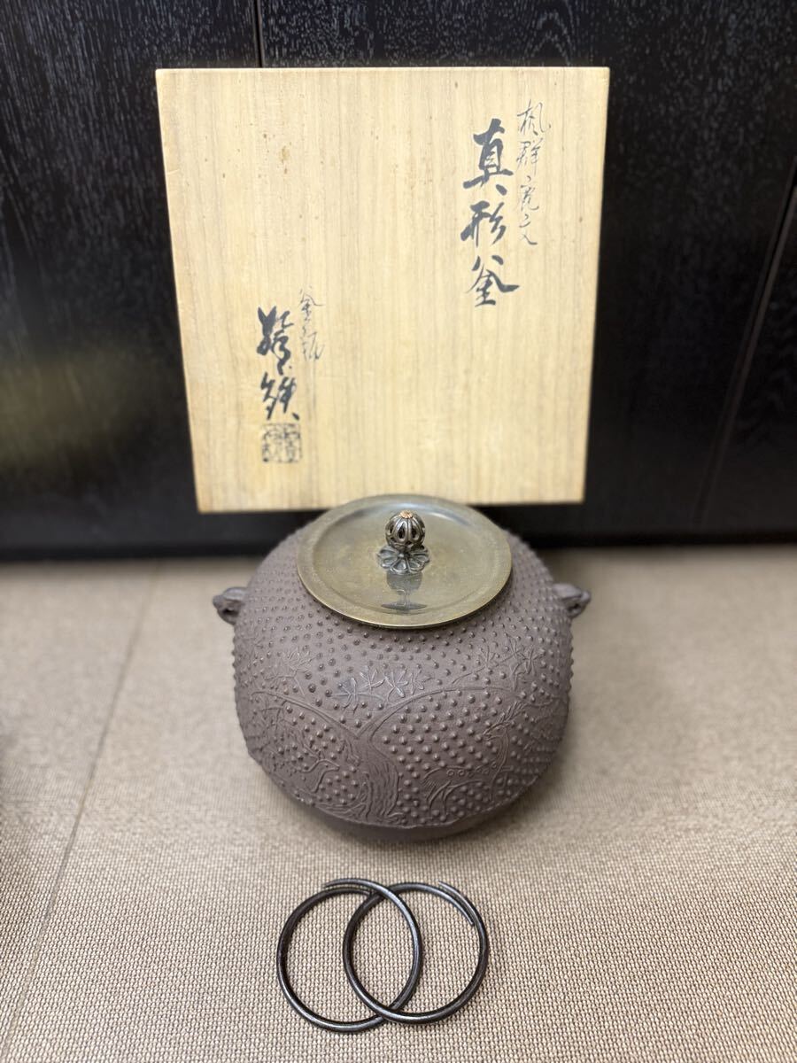 - 増山馨鉄 楓群鹿紋釜 茶道具 茶釜 釜師 共箱 美品